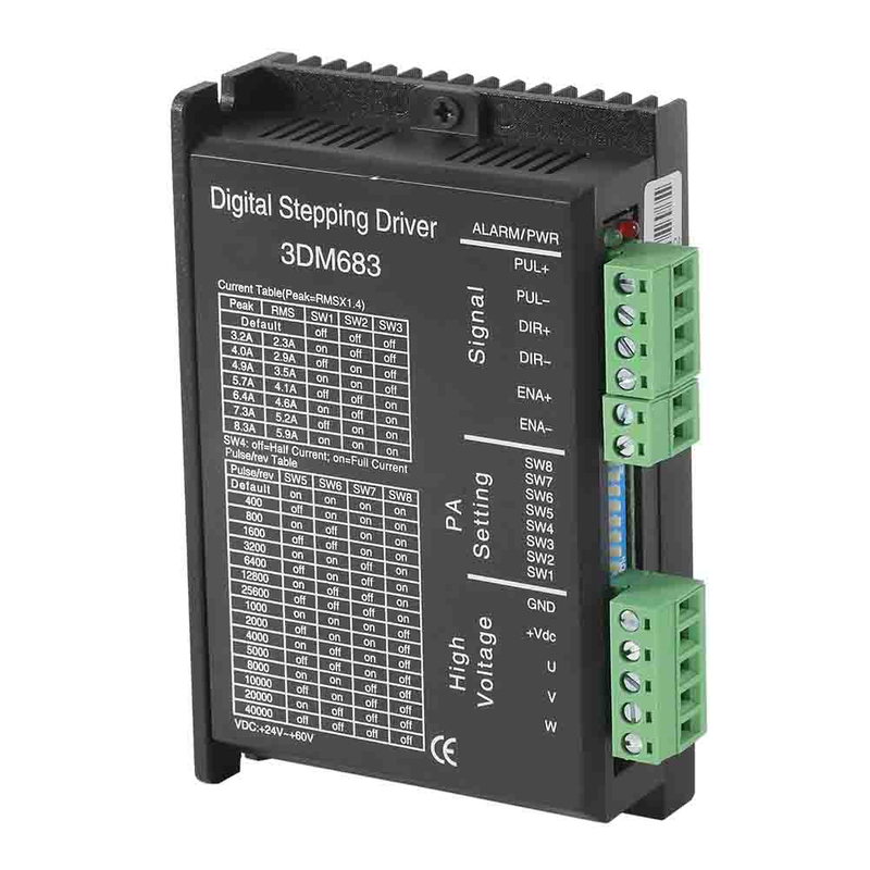 The BF3DM683 is a new generation high-performance digital stepper driver based on DSP with advanced control algorithm. The motors driven by BF3DM683 can run with much smaller noise and much less vibration than other drivers in the market. The BF3DM683 possess the feature of lower noise, lower vibration, and lower heating. The BF3DM683's voltage is DC 24V-60V. It is suitable for all the 3-phase hybrid stepper motor whose current is less than 5.6A.There are 16 kinds of microstep of 3DM683. The maximum step number of BF3DM683 is 51200 steps/rev (microstep is 1/256 ). Its current range is 3.2A-8.3A, and its output current has 8 stalls. JK3DM683 has automatic semi-flow, over-voltage, under voltage and over-current protection function.