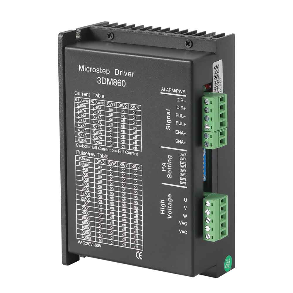 The Besfoc 3DM860 is a fully digital stepper driver developed with advanced DSP control algorithm based on the latest motion control technology. It is easy to use and it can be used to drive 2-phase nema 34 hybrid stepper motors smoothly with less heat and noise. It works with 24-80VAC or 24-110VDC voltage and can provide max 7.2A peak current. The system achieves exceptional smoothness, delivering optimal torque while eliminating mid-range instability. Its automatic motor identification and parameter configuration enables quick setup with different motors. Compared to traditional analog drives, the DM860H operates with lower noise, less heat generation, and smoother movement. These features make the DM860H ideal for high-performance applications.