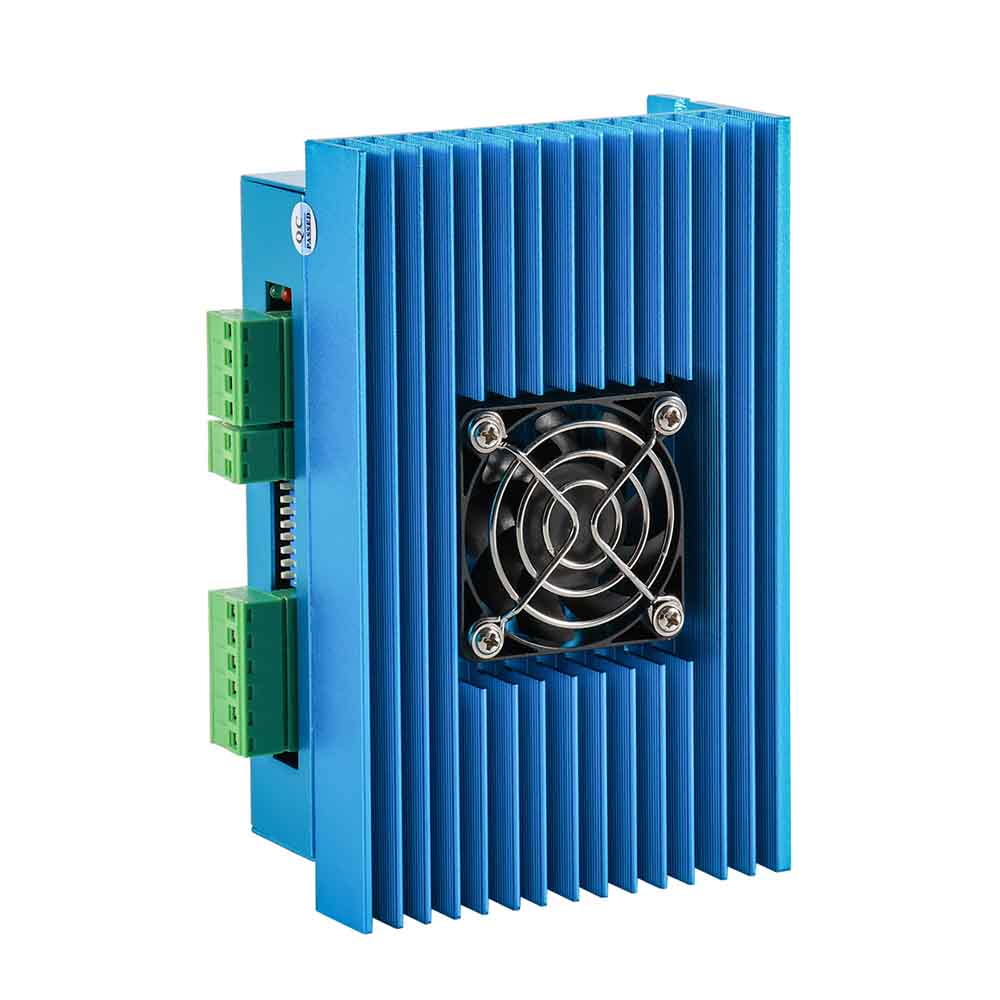 The BFDM860H is a fully digital stepper driver developed with advanced DSP control algorithm based on the latest motion control technology. It is easy to use and it can be used to drive 2-phase nema 34 hybrid stepper motors smoothly with less heat and noise. It works with 24-80VAC or 24-110VDC voltage and can provide max 7.2A peak current. The system achieves exceptional smoothness, delivering optimal torque while eliminating mid-range instability. Its automatic motor identification and parameter configuration enables quick setup with different motors. Compared to traditional analog drives, the DM860H operates with lower noise, less heat generation, and smoother movement. These features make the DM860H ideal for high-performance applications.
